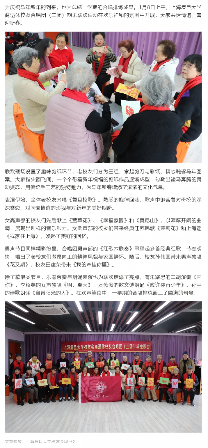 简讯|迎新春 复旦离退休校友合唱团(二团)期末联欢暖意融融