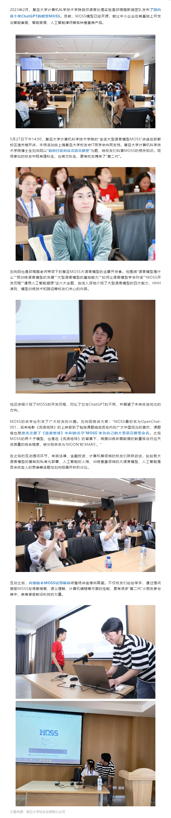 摘要:2023年2月,复旦大学计算机科学技术学院自然语言处理实验室邱锡鹏教授团队发布了国内首个类ChatGPT的模型MOSS。目前,MOSS模型已经开源,能让中小企业在其基础上开发出智能客服、智能家居、人工智能律师等各种垂直类产品。