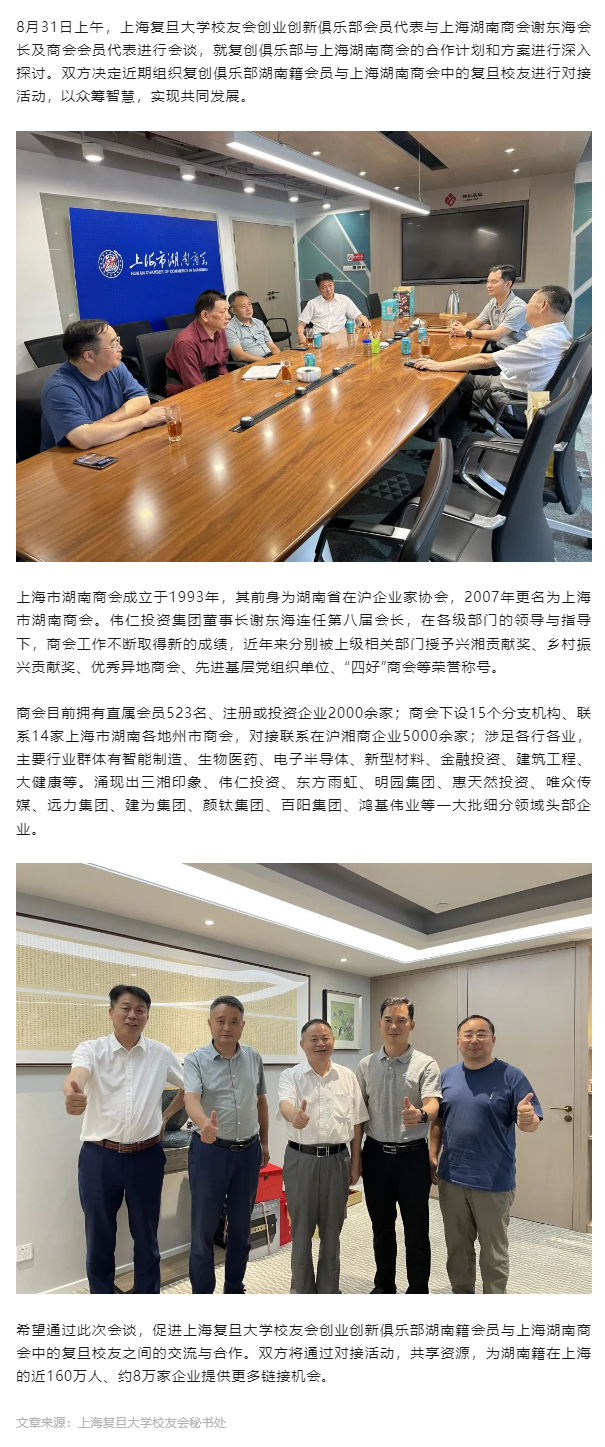 简讯 | 复创俱乐部与上海湖南商会共商链接 探讨交流合作机会
