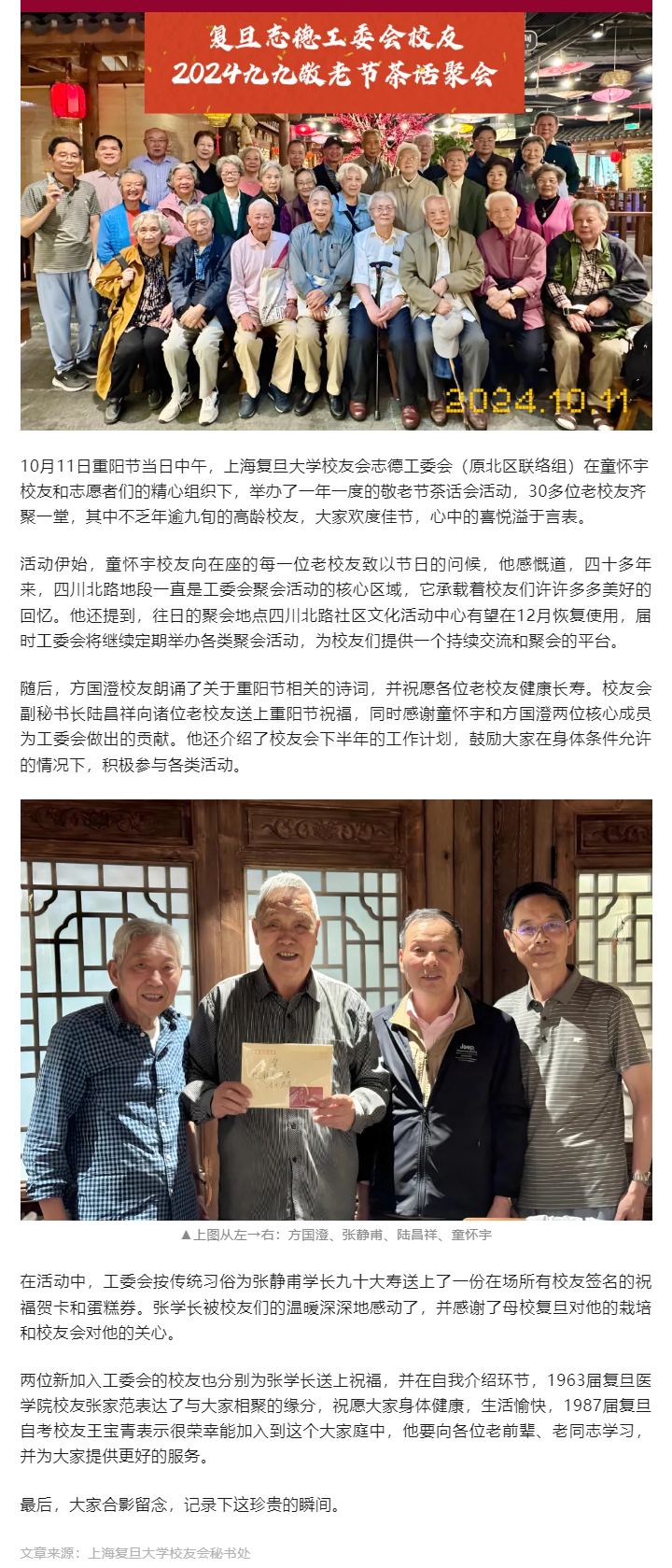 简讯丨复旦志德工委会重阳聚会 贺校友九十大寿